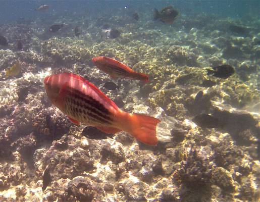 dass sie nicht mal mehr wegschwimmen, wenn man ihnen nahe kommt. Der Meeresbiologe hat uns von einem Fisch erzählt („Fred“), der manchmal direkt auf die Menschen zuschwimmt, damit sie ihn anfassen - als wolle er gestreichelt