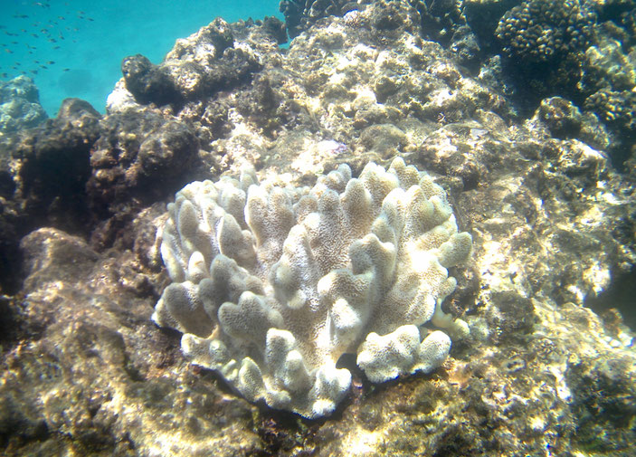 zurück bleibt das weiße Skelett. Außerdem leidet das Riff unter immer intensiveren Stürmen und der zunehmenden Versauerung der Meere.